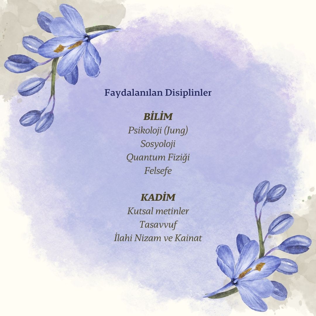 Aktif olarak kendi üzerime çalışmaya başladıktan sonra mizacımın verdiği avantajla; Enneagram ve 4. Yol sentezini rehber aldığım, bunun yanında Psikoloji, Sosyoloji, Quantum Fiziği, Felsefe gibi bilim disiplinlerinden ve Kutsal Kitaplar, Tasavvuf, İlahi Nizam gibi kadimden gelen bilgilerle de sentezi genişlettim. Daha önceden neden yaşadığımı idrak edemediğim bir çok olay ve durumu bu sentezin yardımıyla idrak etme fırsatı buldum.